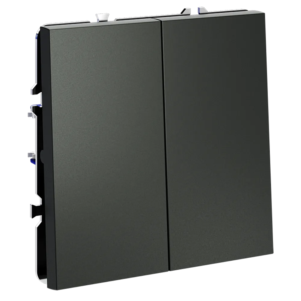 Двухклавишный проходной переключатель VOLTUM S70 в цвете «титан» — это продвинутое решение для независимого управления двумя группами освещения из двух и более точек. Идеально подходит для просторных гостиных, спален с отдельной зоной отдыха, офисов и многоуровневых помещений, где требуется гибкость и удобство управления светом — например, у входа и у изголовья кровати.