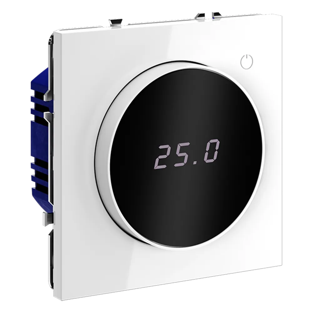 Место установки. Терморегуляторы Voltum предназначены для регулирования температуры электрического теплого пола. Актуальны как в городских квартирах, так и в загородных дачных домах без центрального отопления. Корпус. Дизайн терморегуляторов Voltum сочетается со стилем остальных электрических устройств компании. Они совместимы со всеми рамками. Материал внешних декоративных элементов — поликарбонат. Конструктивные особенности. Терморегуляторы работают с любыми типами теплых полов и рассчитаны на нагрузку до 3500 Вт. Устройства оснащены светодиодной индикацией режима и дисплеем, на котором отображается температура поверхности пола. Красный индикатор — «подача питания на нагревательный кабель (идет процесс нагрева)», отсутствие индикации — «заданная температура достигнута». В течение 15 минут после нагрева терморегулятор переходит в интеллектуальный «спящий режим», уменьшая яркость подсветки цифр и сокращая энергопотребление. Регулировка осуществляется вращением панели управления. Терморегулятор поставляется в комплекте с механизмом из пластиковой накладки и датчиком температуры.