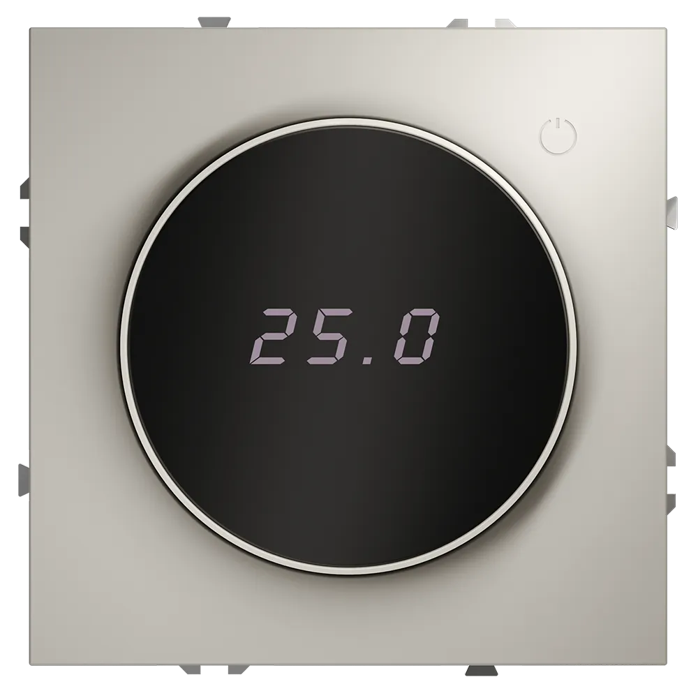 Место установки. Терморегуляторы Voltum предназначены для регулирования температуры электрического теплого пола. Актуальны как в городских квартирах, так и в загородных дачных домах без центрального отопления. Корпус. Дизайн терморегуляторов Voltum сочетается со стилем остальных электрических устройств компании. Они совместимы со всеми рамками. Материал внешних декоративных элементов — поликарбонат. Конструктивные особенности. Терморегуляторы работают с любыми типами теплых полов и рассчитаны на нагрузку до 3500 Вт. Устройства оснащены светодиодной индикацией режима и дисплеем, на котором отображается температура поверхности пола. Красный индикатор — «подача питания на нагревательный кабель (идет процесс нагрева)», отсутствие индикации — «заданная температура достигнута». В течение 15 минут после нагрева терморегулятор переходит в интеллектуальный «спящий режим», уменьшая яркость подсветки цифр и сокращая энергопотребление. Регулировка осуществляется вращением панели управления. Терморегулятор поставляется в комплекте с механизмом из пластиковой накладки и датчиком температуры.